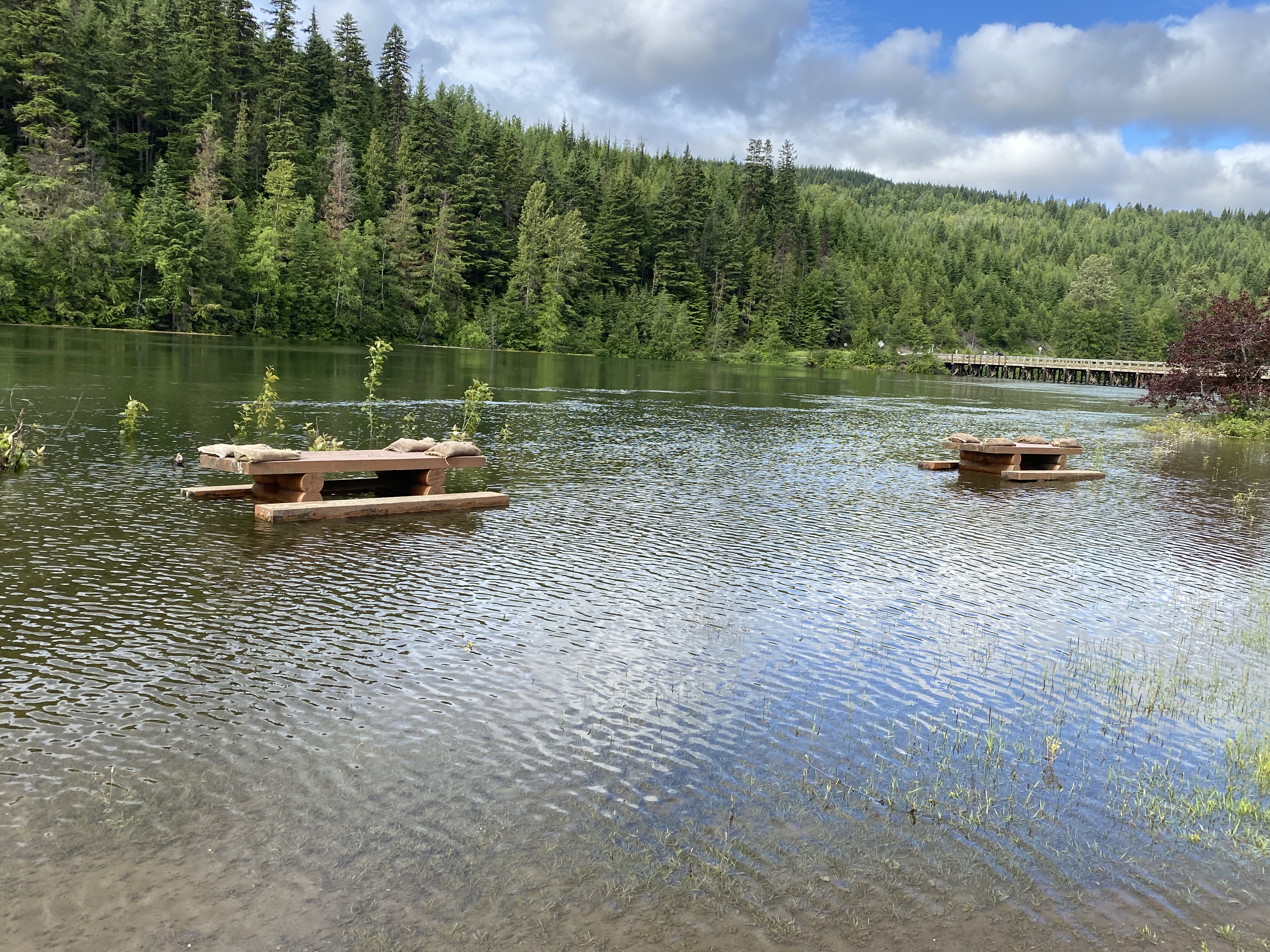 As we wound our way north up the Gold Rush Trail from Clinton, it became pretty clear that the weather was not going to improve and that we had better prepare for a lot of rainy days. Between the rain and the late snowmelt making its way to the rivers and lakes in the Cariboo, we found that a number of our intended destinations were actually under water!