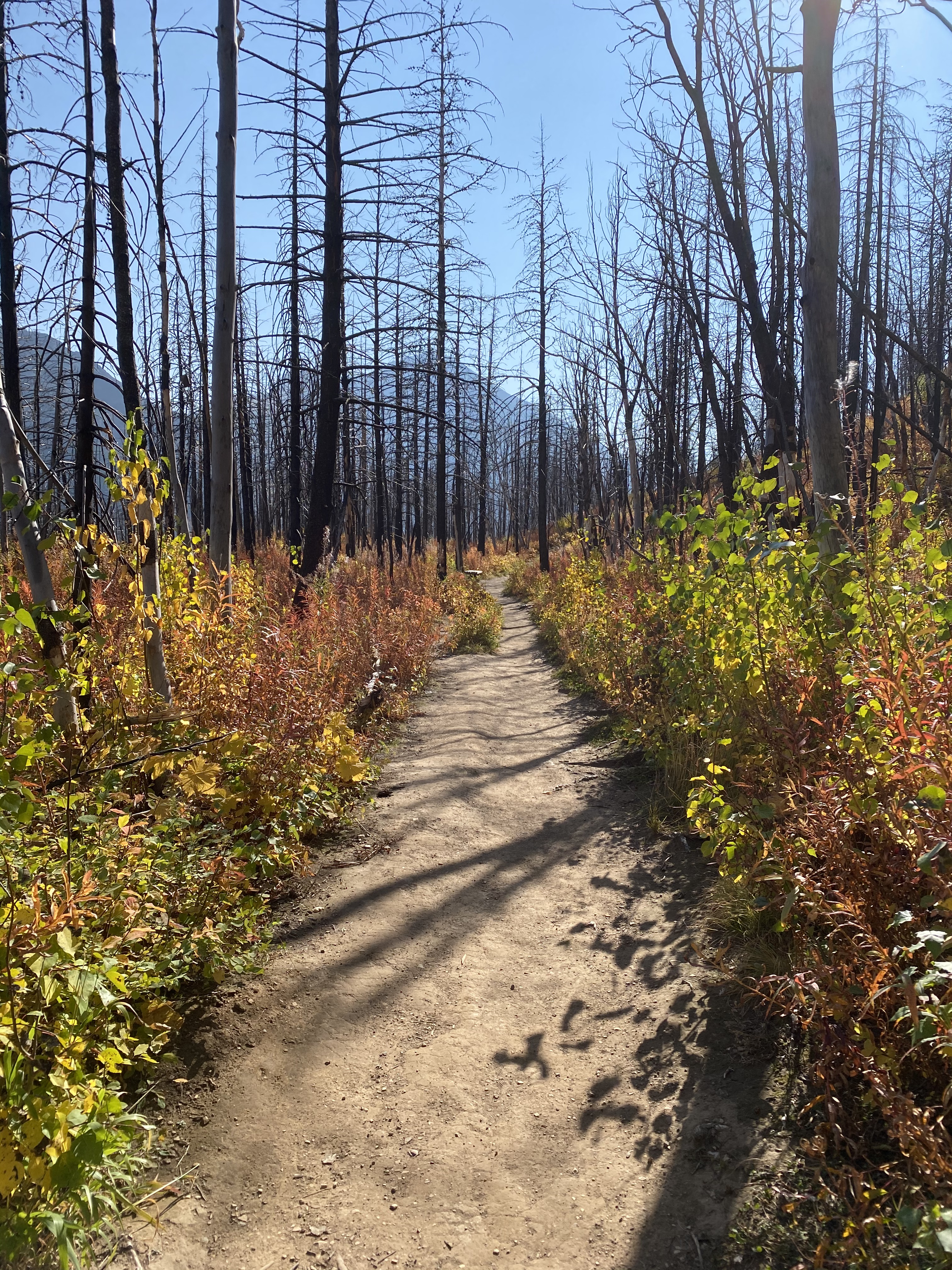 We had never visited Waterton Lakes National Park before and were excited to start exploring. Three years ago, the park made headlines for the worst of reasons…an uncontrolled wildfire was destroying much of the park. Valiant (and fortunately successful) efforts were made to save the iconic Prince of Wales Hotel but much of the surrounding forests and park infrastructure were burned. From that time, large areas of the park remained closed while clean-up and rebuilding were undertaken. On our first hike to Bertha Lake, the damage was obvious – most of the surrounding forest along the trail had been destroyed – but it did retain a rather eery beauty.