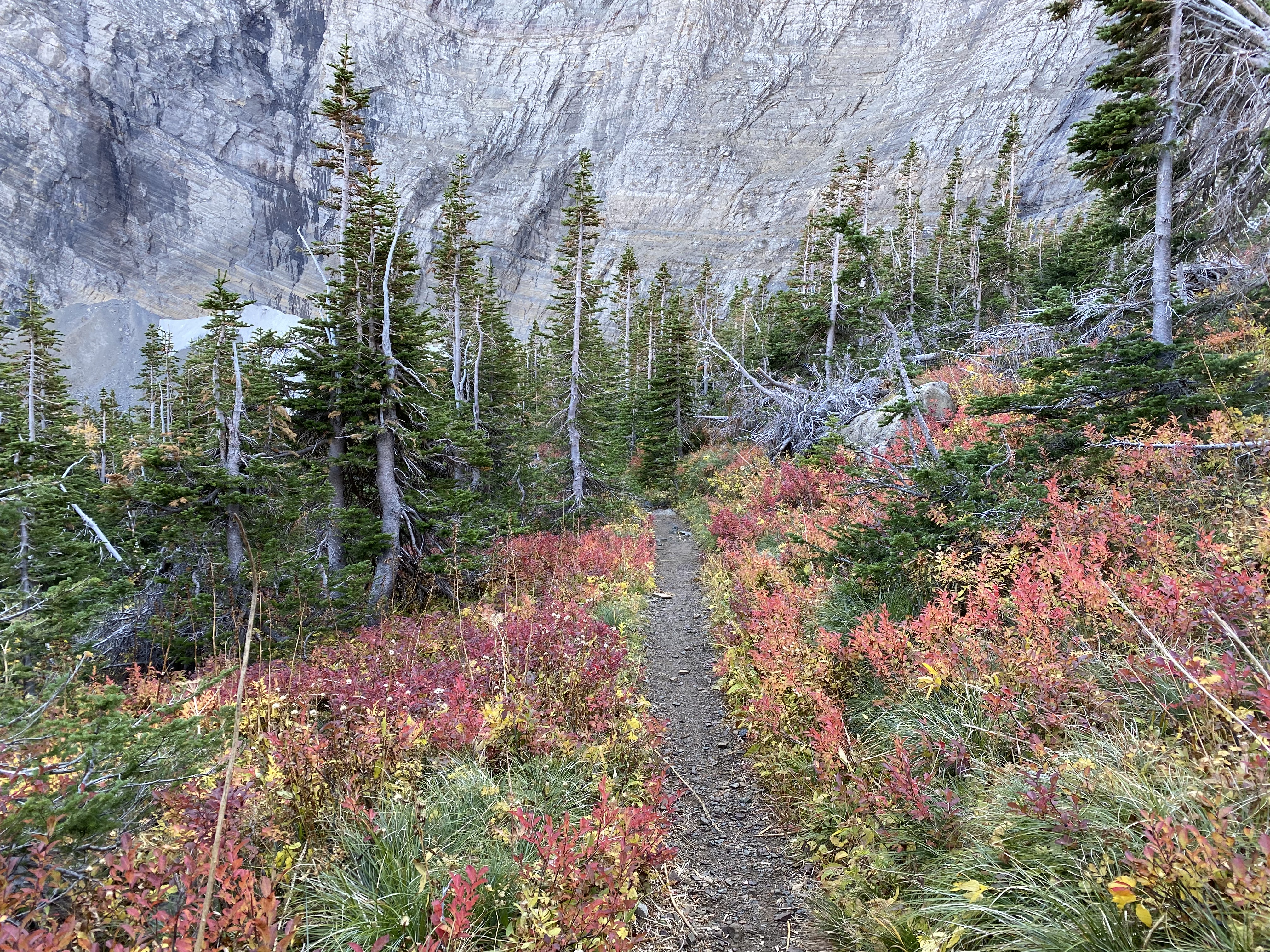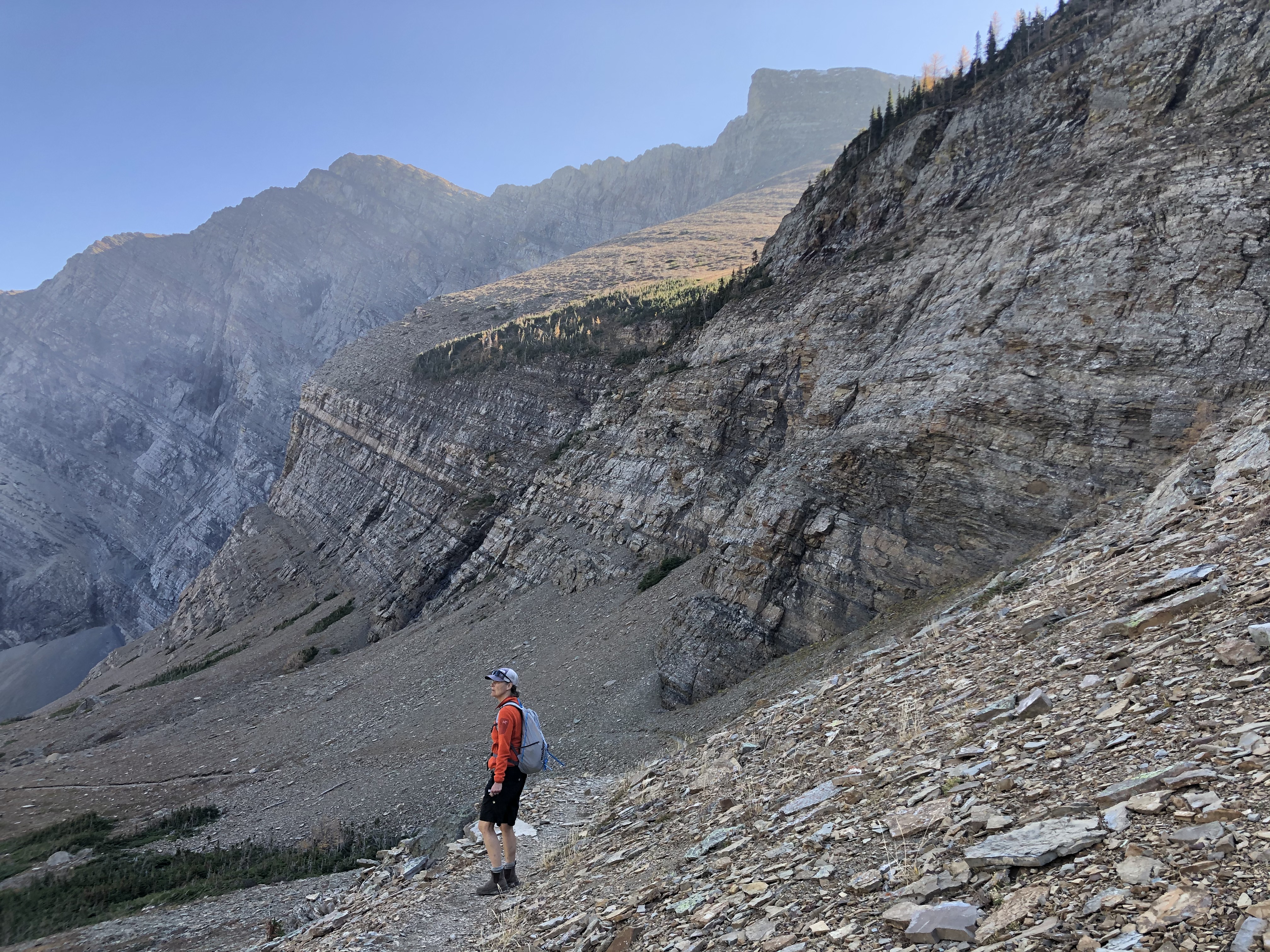 Our next day of hiking was on the Carthew-Alderson Trail. We were joined by our friend Tracy from Lethbridge – a fellow Canadian who we met in Patagonia earlier this year. It was lovely to catch up and have a local perspective on the trail. Our hike started at Cameron Lake and finished near the Waterton townsite. The Akamina Parkway is used to access the start of the trail but has been closed for the past three years as reconstruction from the wildfire in 2017 was undertaken. Turns out our timing was good on this one – the Parkway reopened the day we arrived in Waterton so we were among the first to drive the new road and hike the trail from Cameron Lake. The trail was uncrowded and the weather was spectacular….and we got a few curious looks from some of the wildlife!