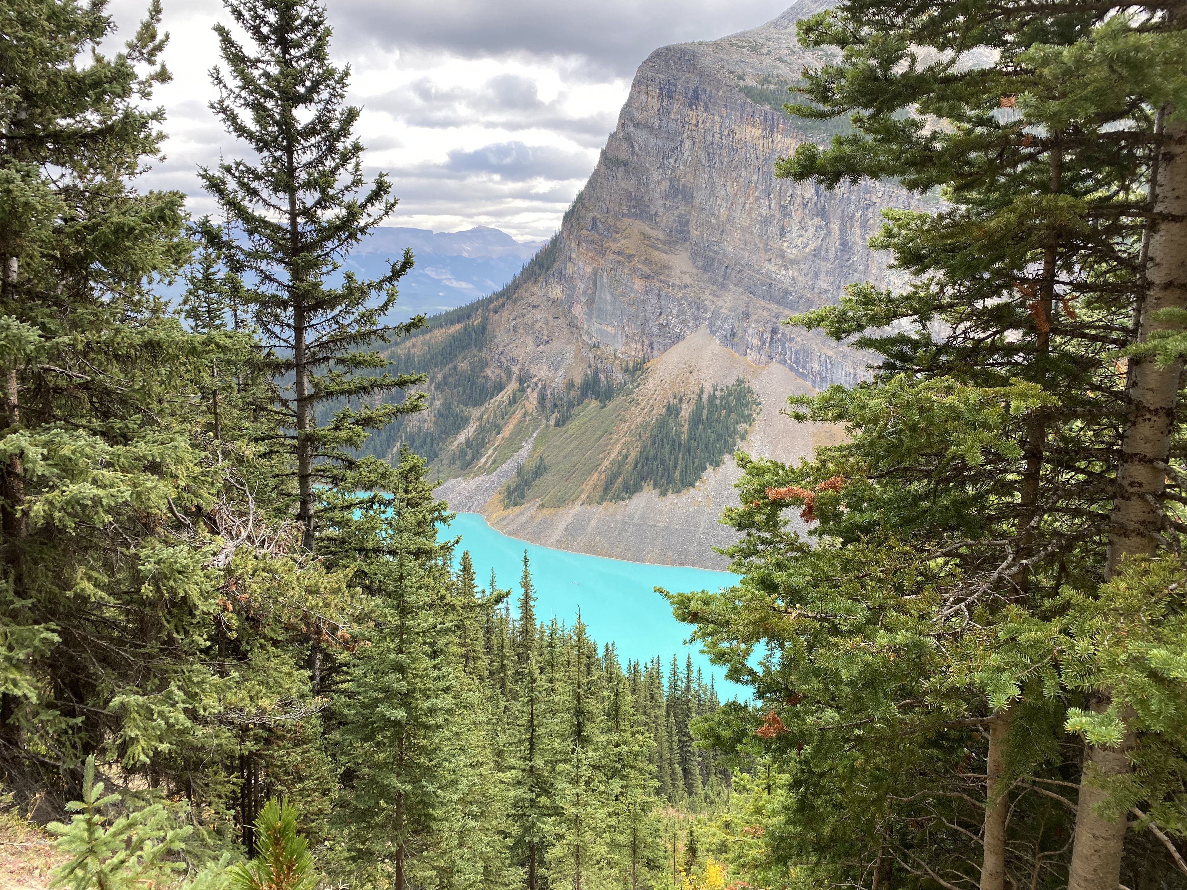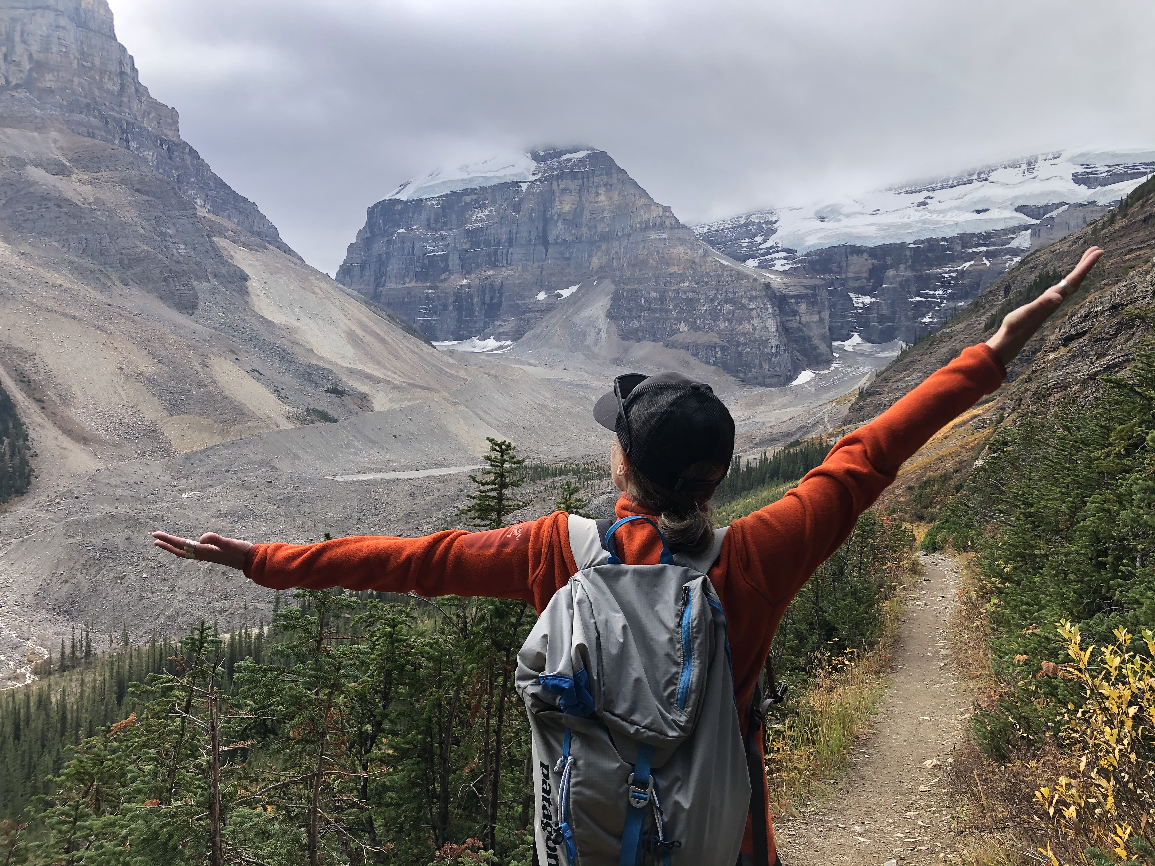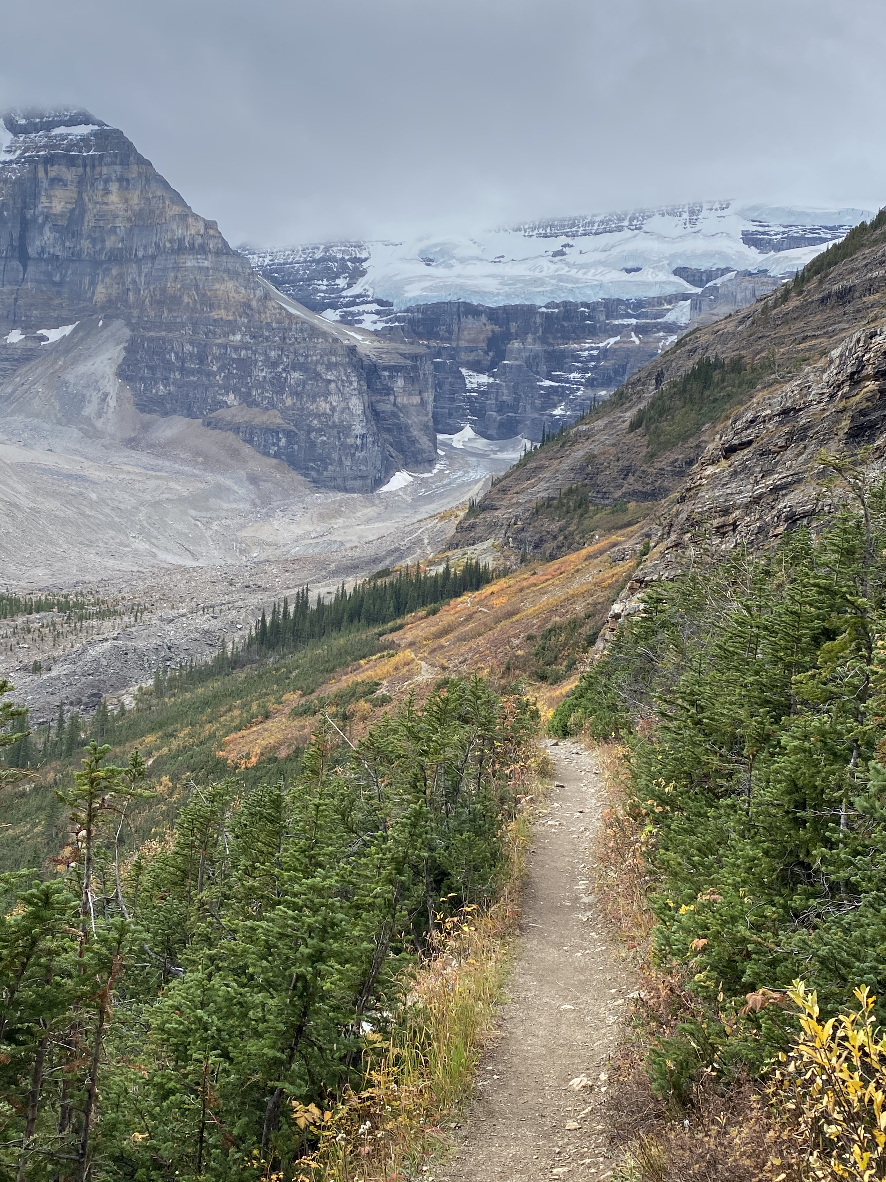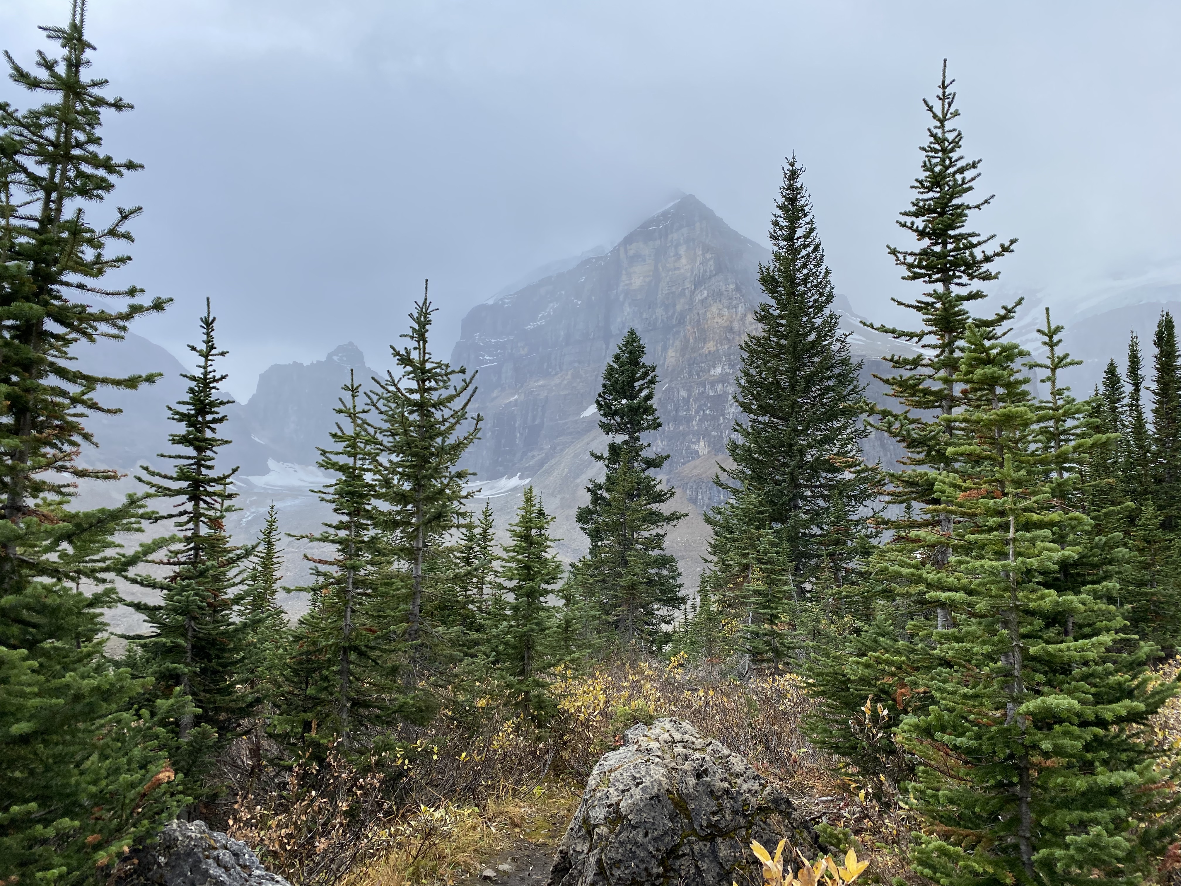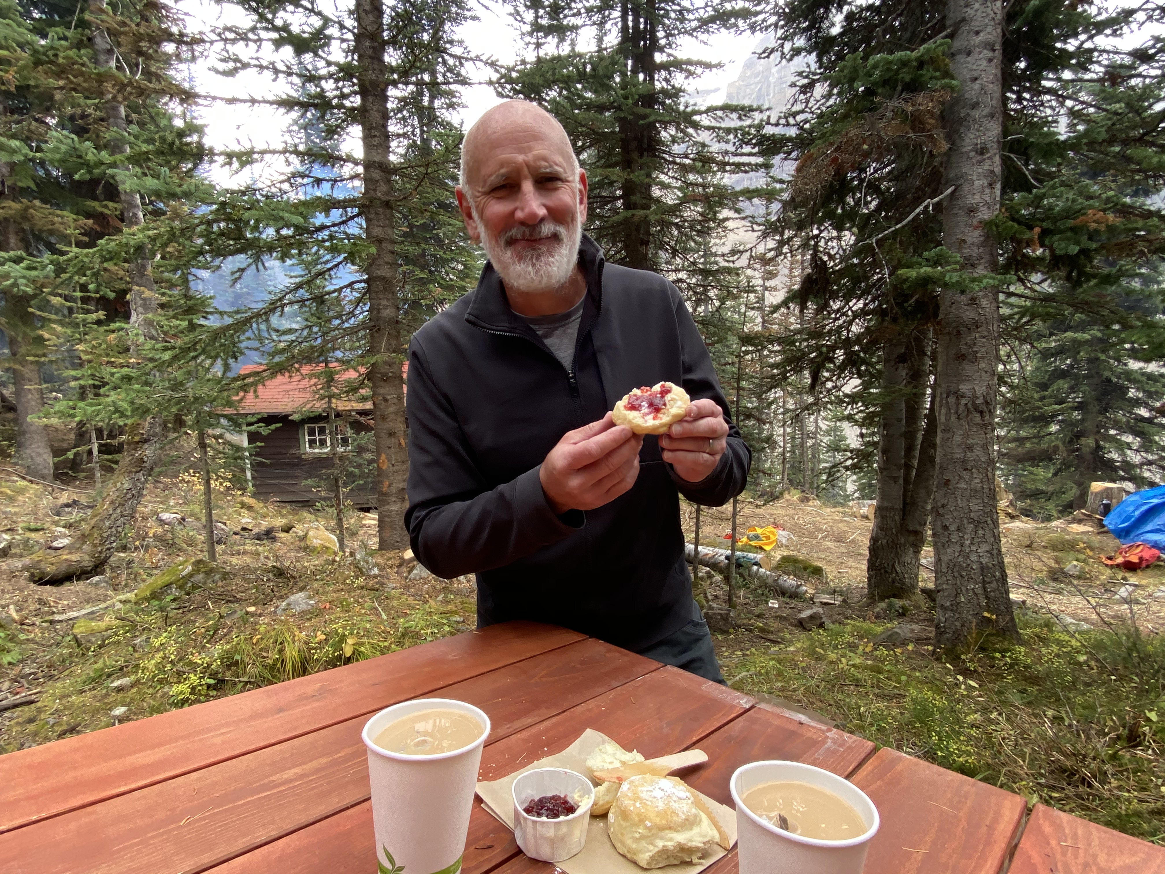 After leaving Waterton, we wanted to take advantage of the continued good weather so made a break for Lake Louise in Banff National Park to re-do one of our favourite hikes to the tea houses. There are two tea houses that are accessed from a trail that starts at Lake Louise. The Agnes Lake Teahouse was built in 1901 and the Plain of Six Glaciers Teahouse was built in 1924 by CPR employees as refuges for hikers. These teahouses remain true to their original roots and are off-grid and charmingly rustic. All supplies have to be hiked in so it is pretty special when you can sit down to a nice cup of hot tea and fresh biscuits when you are several hours into the wilderness. And the surrounding scenery isn’t too bad either! Fortunately with the good weather, the tea houses were still open for the season so we were able to enjoy tea and biscuits at both locations.