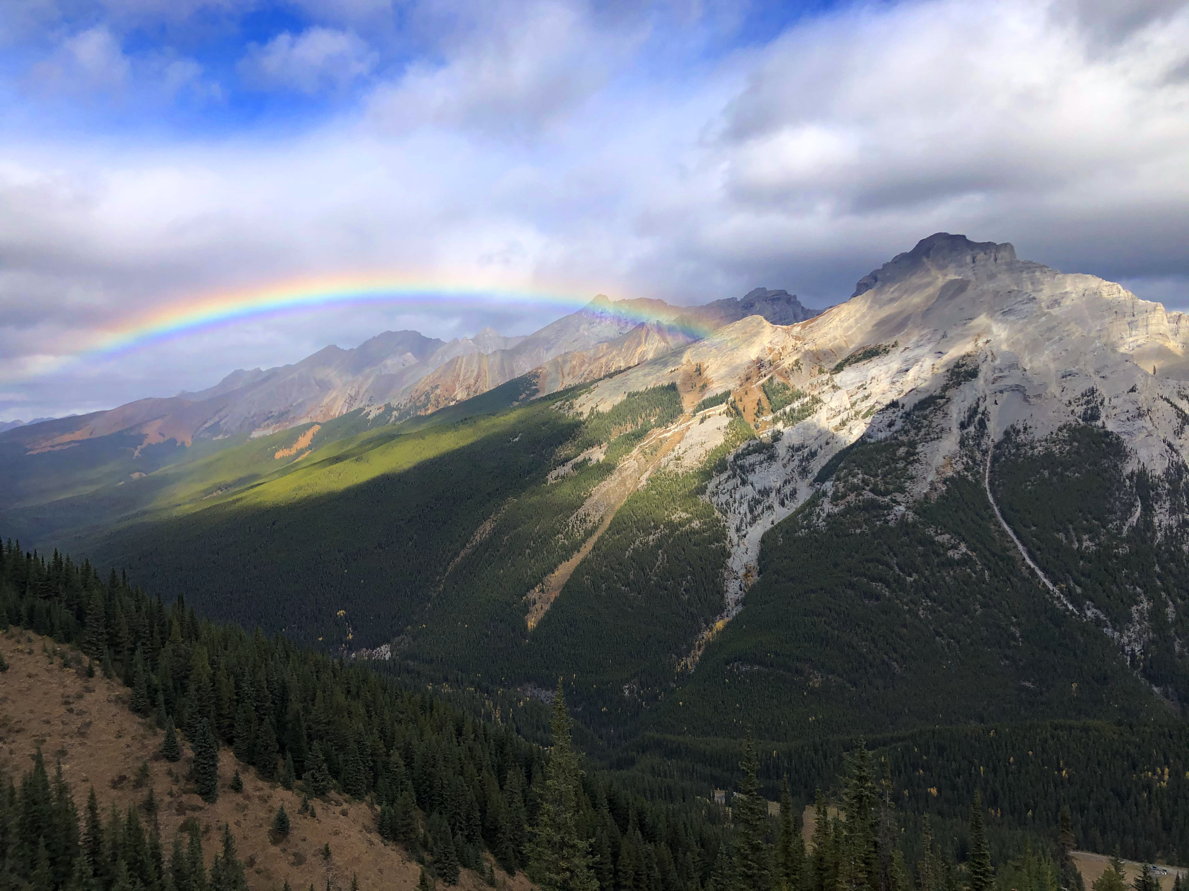 After Lake Louise, we took a break from hiking and opted for the chairlift up Mount Norquay, across the highway from the townsite of Banff. In the winter, it is a busy ski hill but in the summer, you can ride the chairlift to the historic Cliffhouse Restaurant, located at 6900 feet above sea level. It is a really cool renovated mid-century building that was famously visited by Marilyn Monroe in 1953 – they have the photos of her on the chairlift to prove it! We chowed down on a very tasty lunch (and a local craft beer or two for Warren) but the surrounding views were the star of the show here. The mountains are spectacular and we even had a rainbow appear on our way down the mountain.