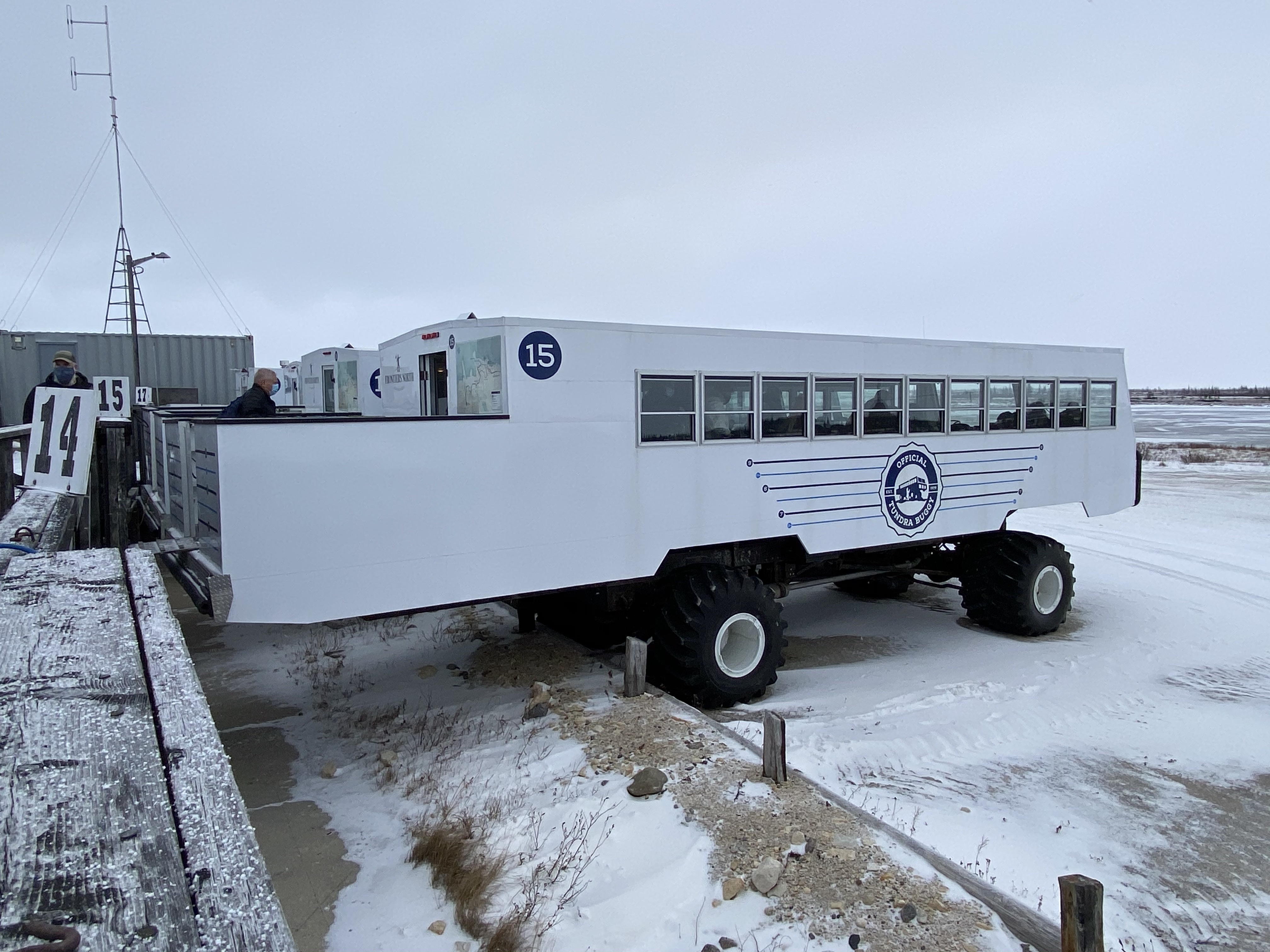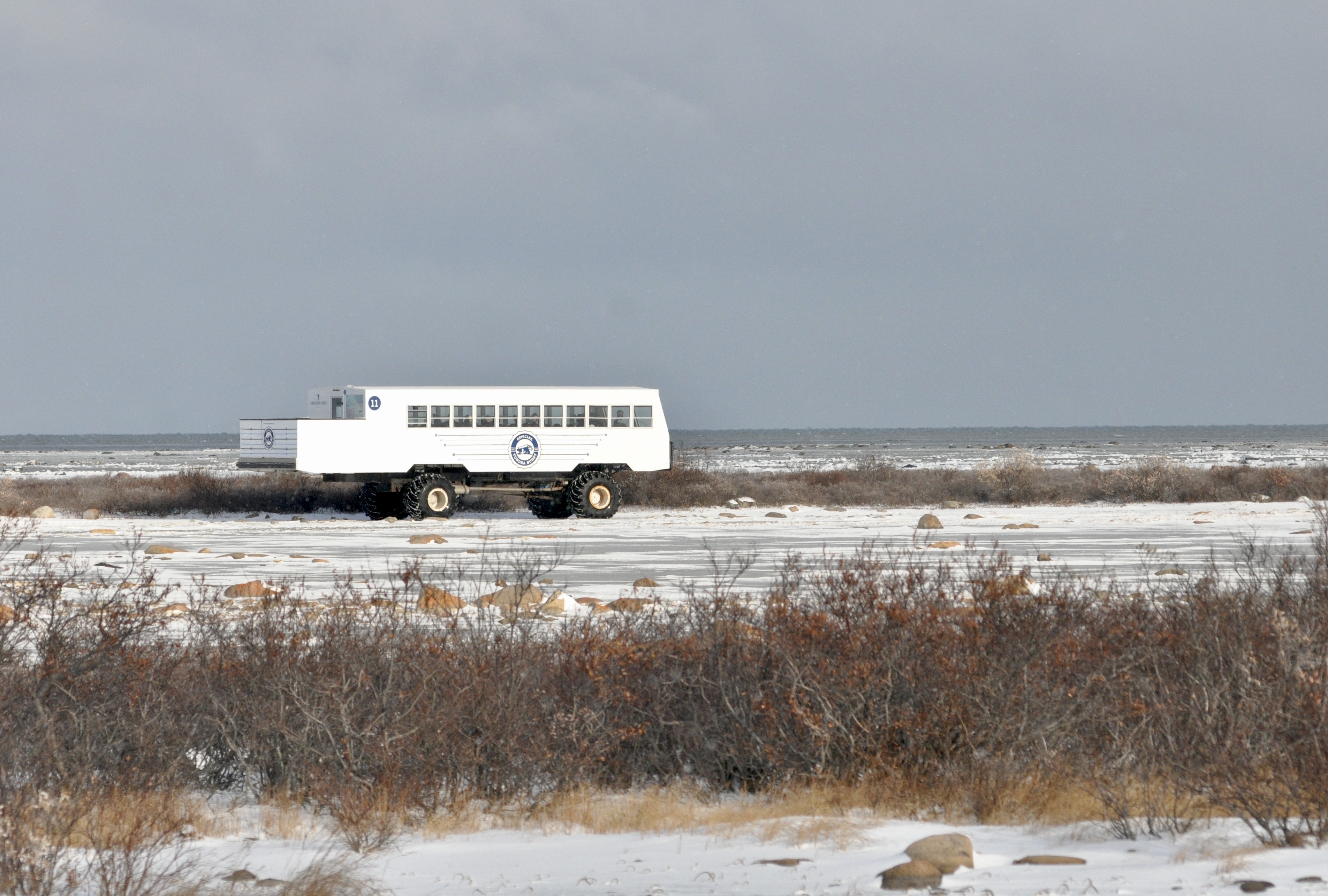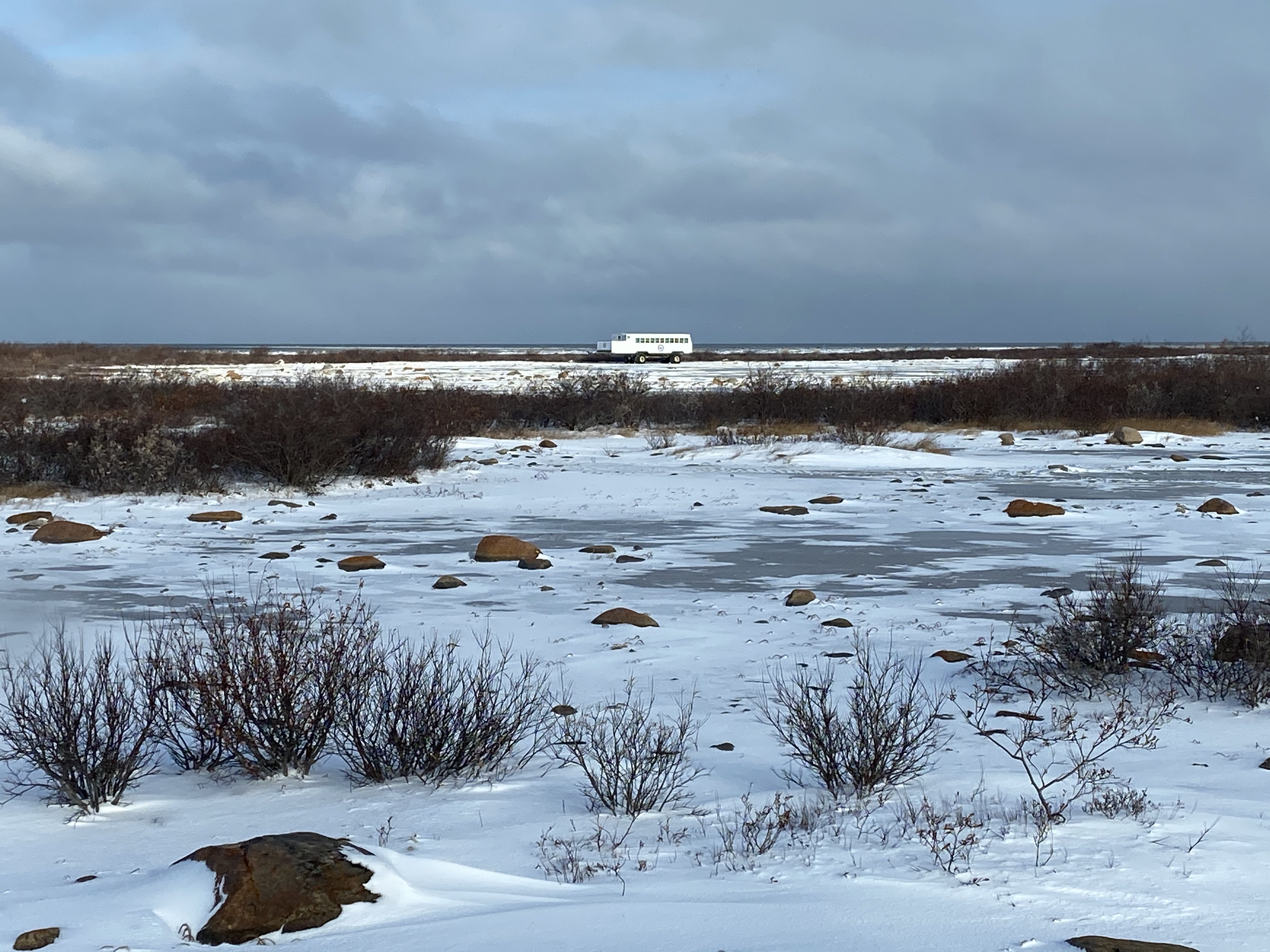 Tundra Buggy 15 was our home for the rest of the day. Hangry polar bears are dangerous creatures and they can easily camouflage themselves in the snow and hide behind the scrub willow so we were not allowed to get out of the buggy once underway. Fortunately the tundra buggies were warm and well-equipped so there was no need to leave.